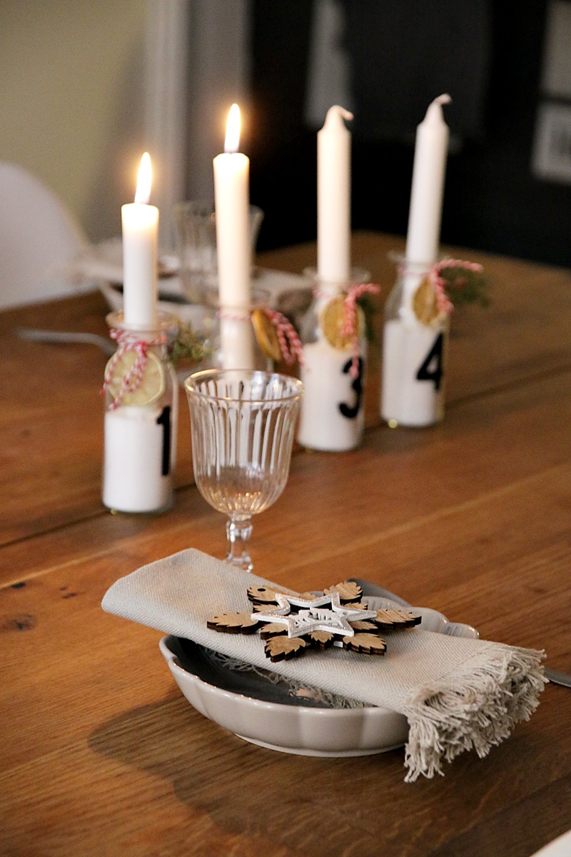Koristeeksi kaivoin joulukoristelaatikosta puiset tähdet.